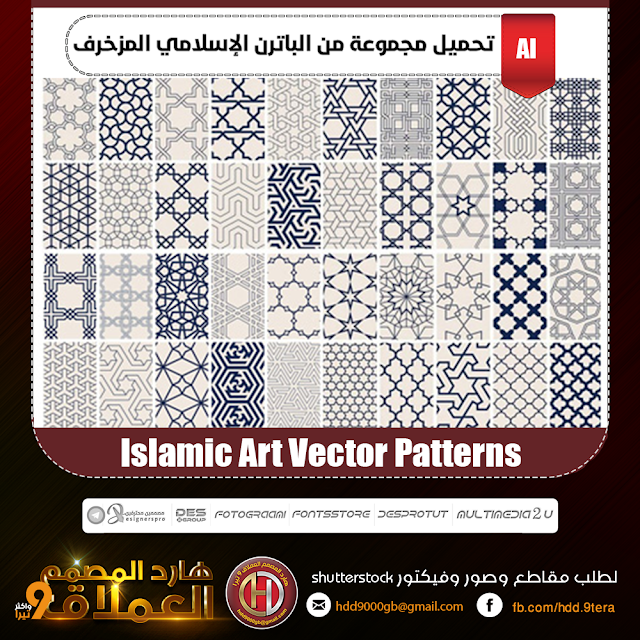 تحميل مجموعة من الباترن الإسلامي المزخرف Islamic Art Vector Patterns هارد المصمم العملاق